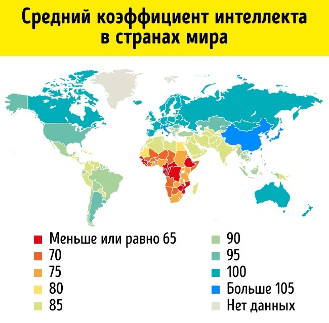 "Согласно The Bell Curve (1994), средний IQ афроамериканцев – 85, латиноамериканцев – 89, белых европейского происхождения – 103, азиатов китайского, японского и корейского происхождения – 106, евреев – 113".