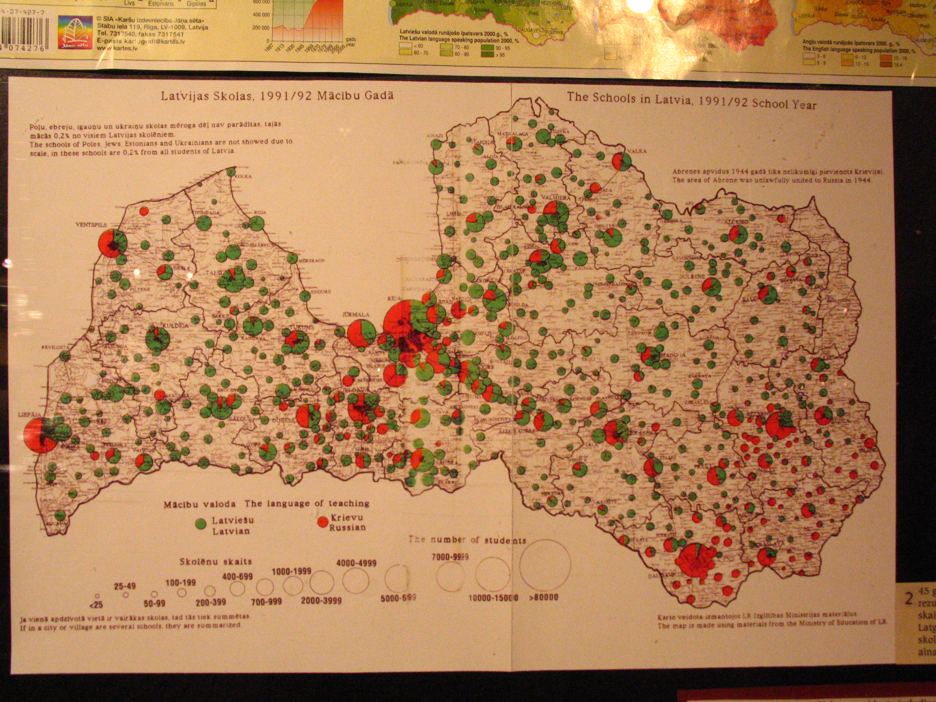 Suddenly I have found my old map:-) It was printed in my book in 1992 and second edition in 1994. Now the situation is a little different - percentage of students studying in Latvian increased to 73% in the country. Please let me know, if you have any questions. Perhaps my text in www.li.lv on minorities will be interesting? Теперь хочу написать брошурку и на русском языке. Regards, Ilmars Mezs